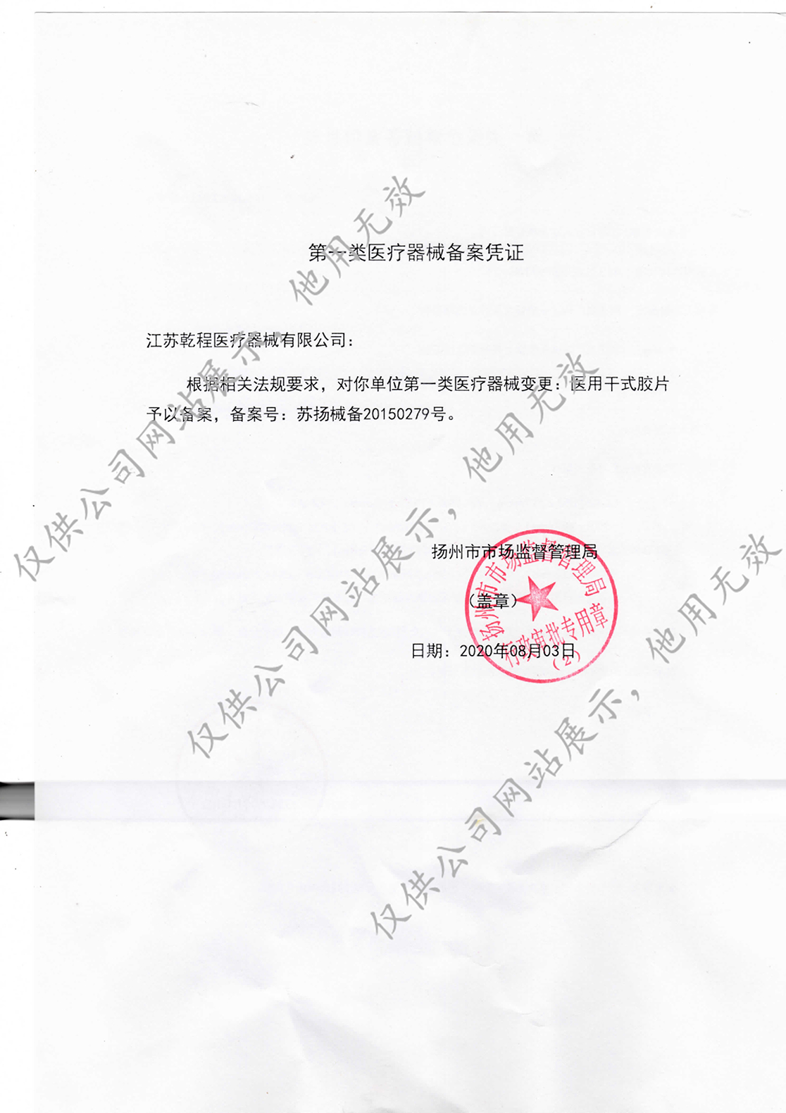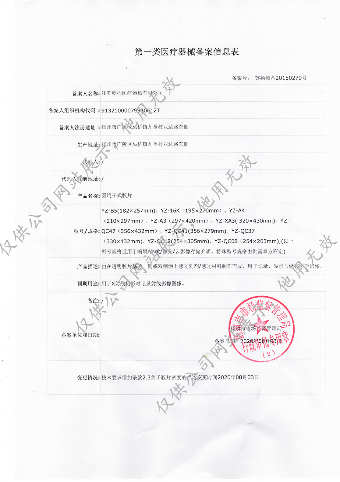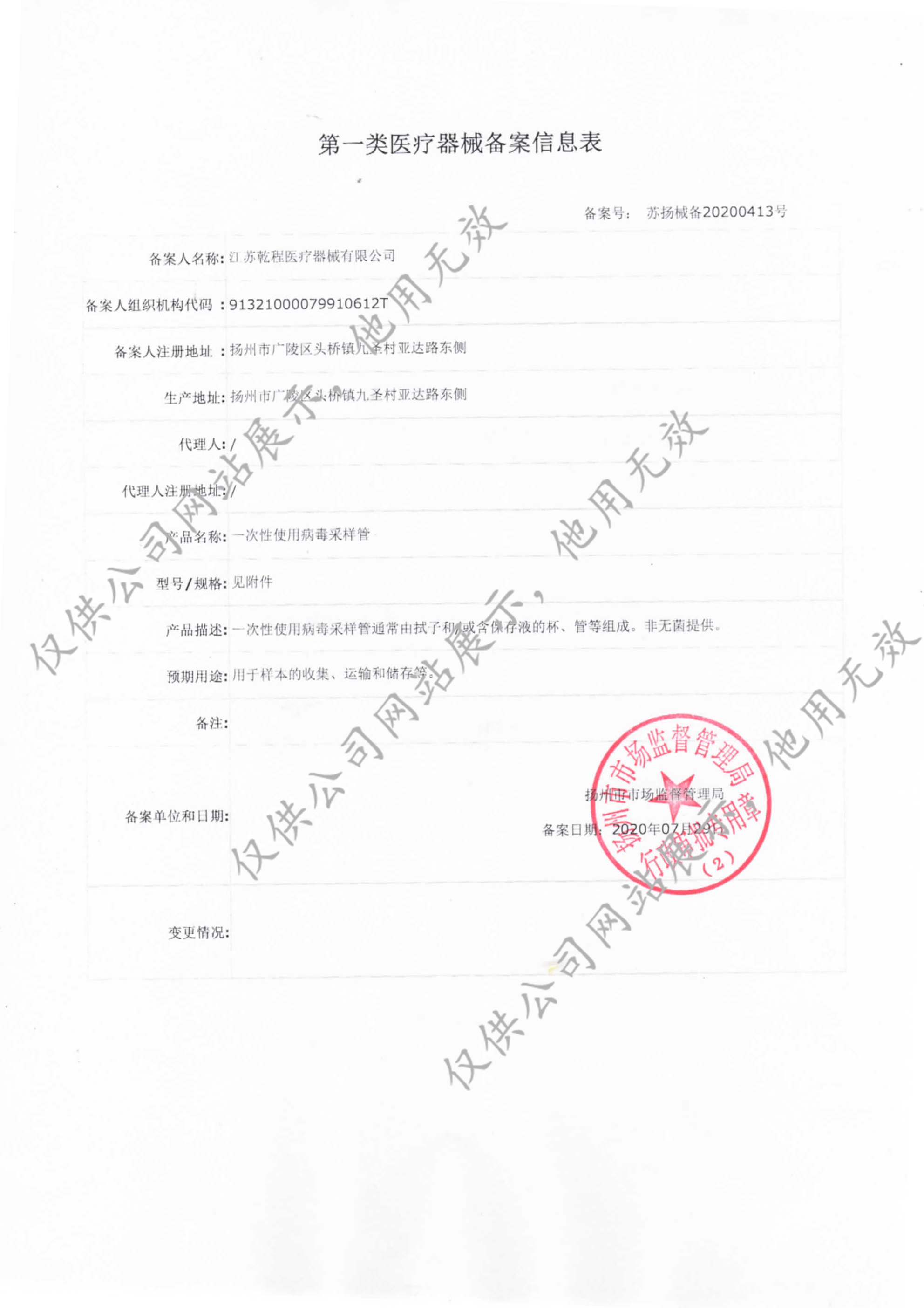 Product Registration Certificate