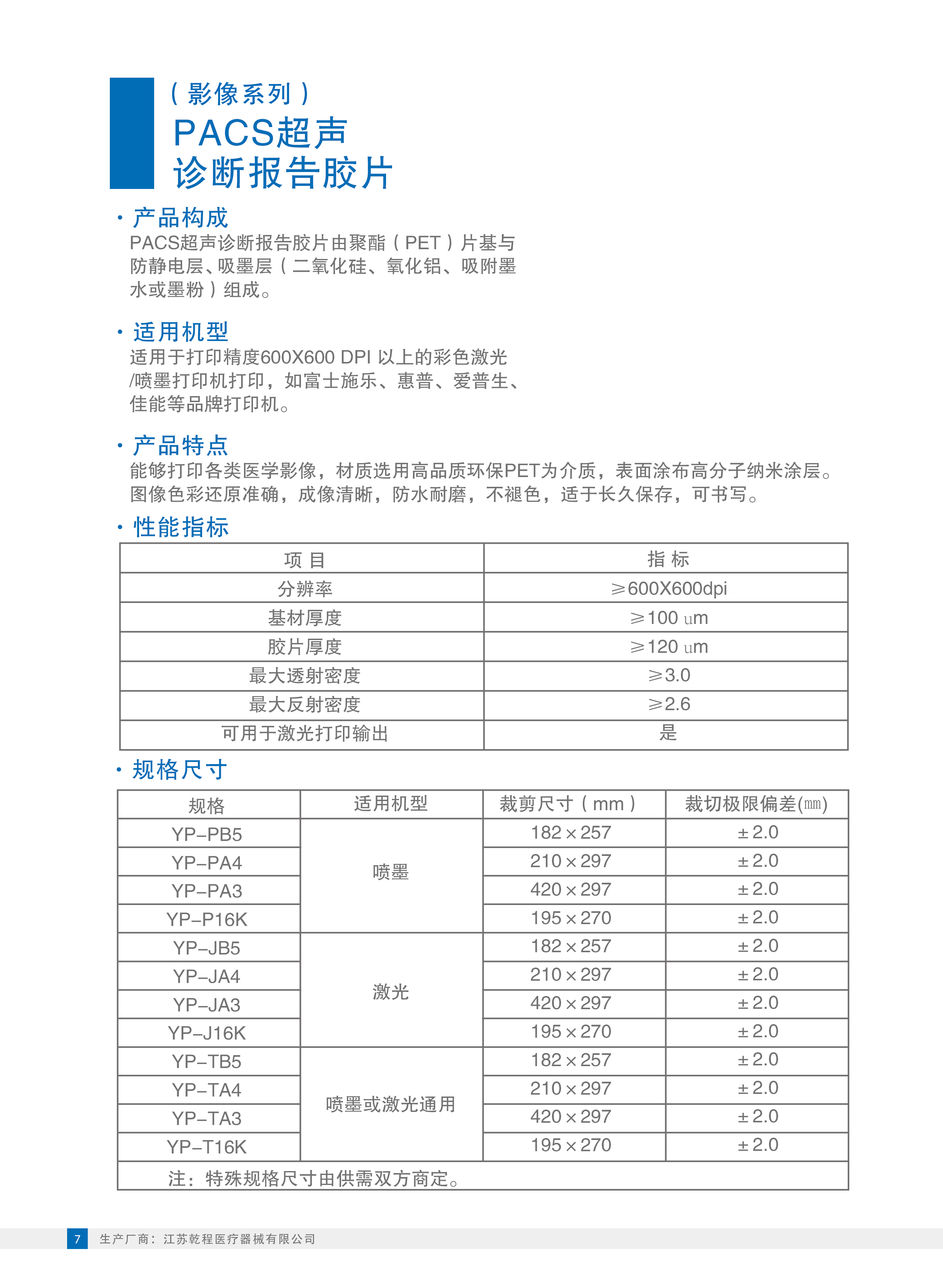 江苏乾程医疗器械-PACS超声诊断报告胶片