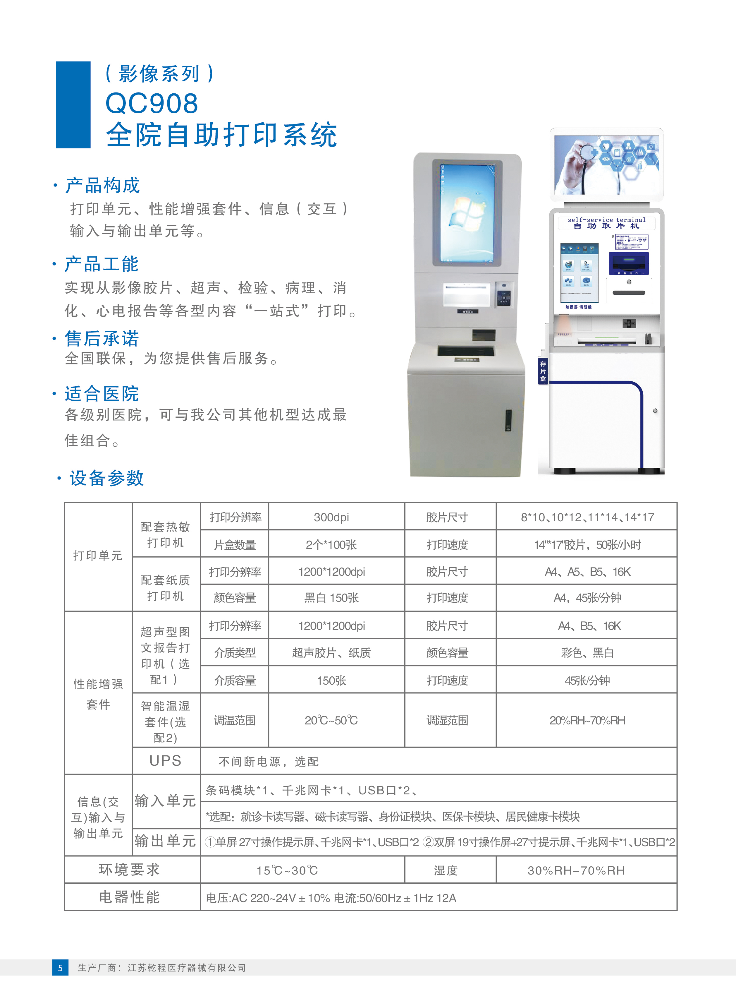 江苏乾程医疗器械-QC908全院自助打印系统